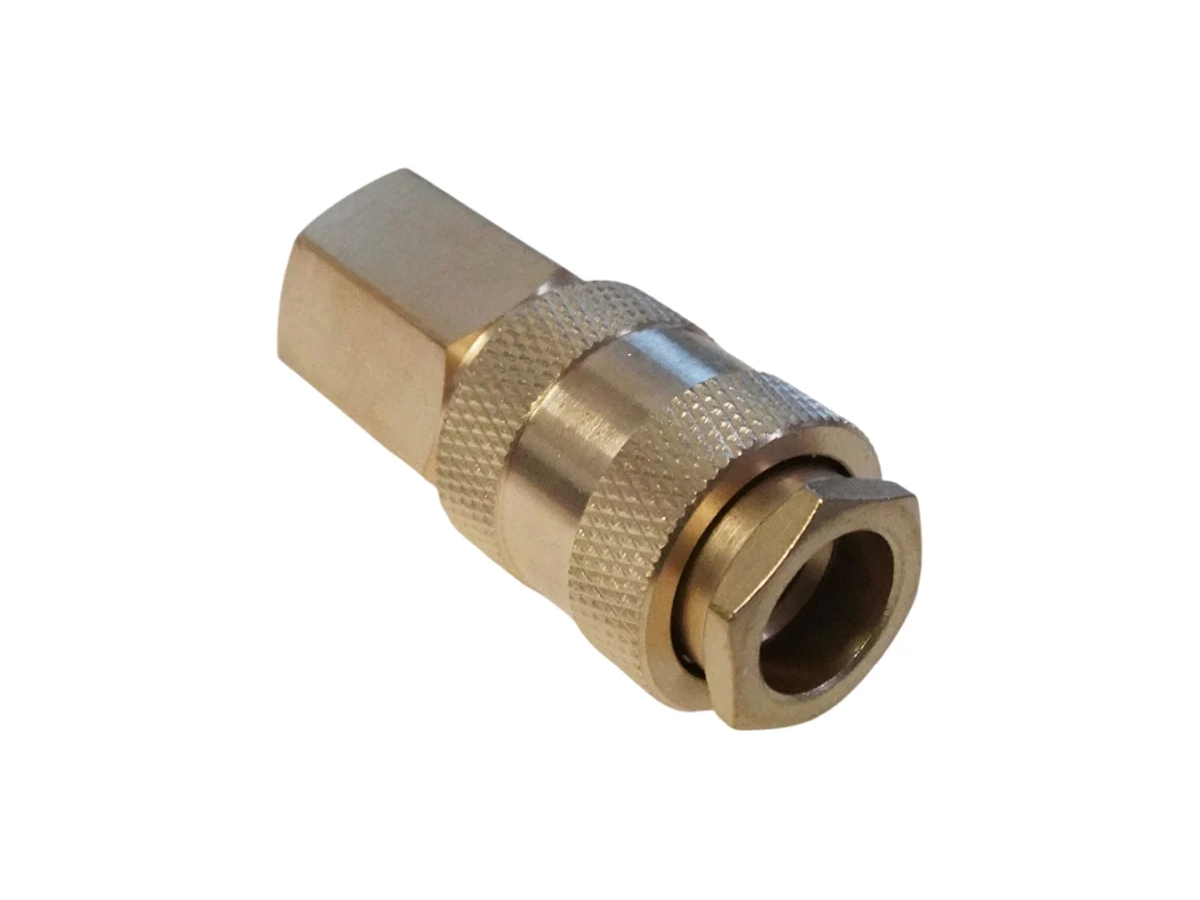 Латунный разъем "мама" быстросъемный с размером внутренней резьбы 1/4". Предназначен для установки на выходном конце различных элементов пневмосистемы для создания автоматических прерывателей подачи воздуха. Латунный корпус исключает возможность появления коррозии.