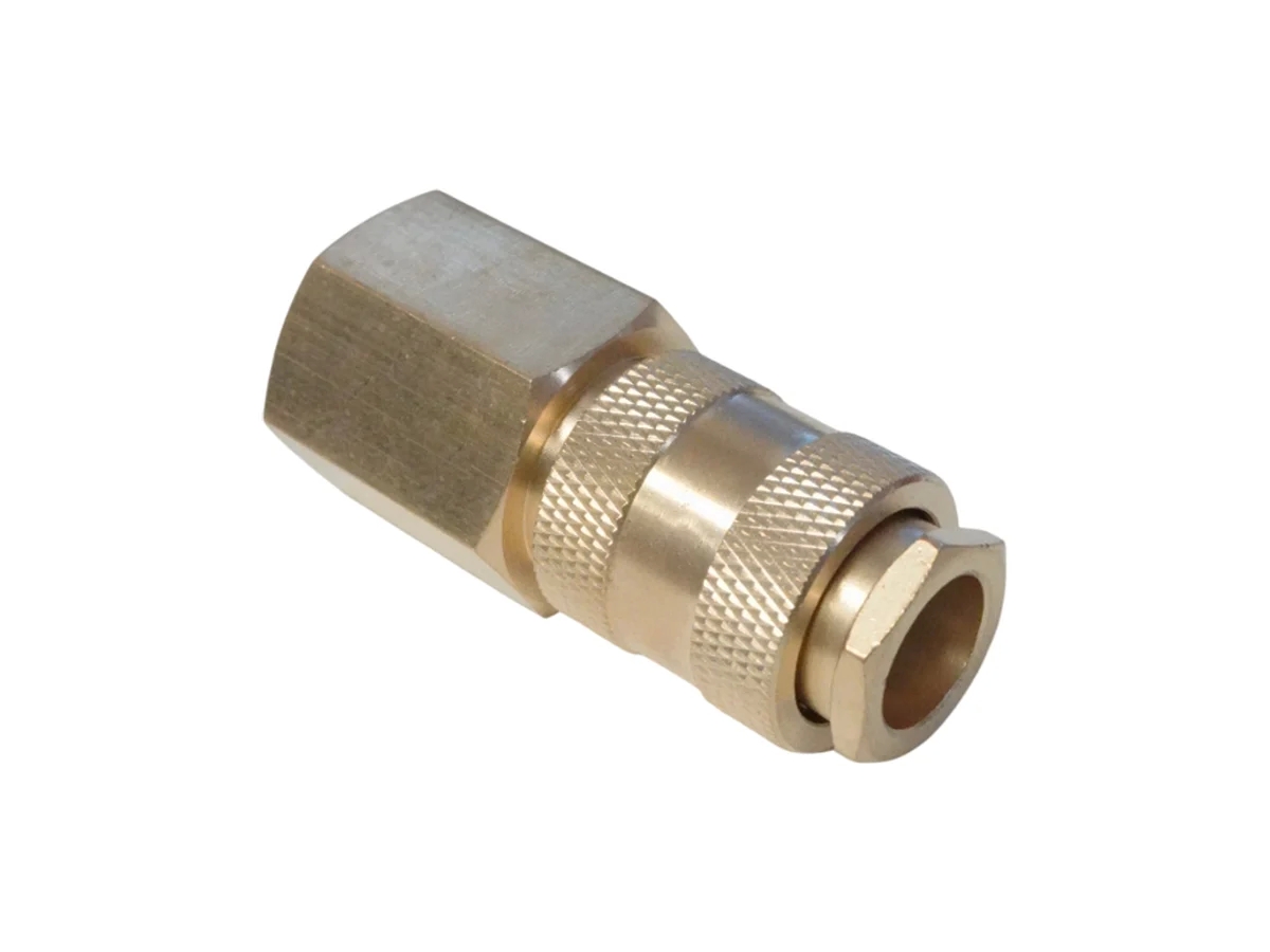 Латунный разъем "мама" быстросъемный с размером внутренней резьбы 1/2". Предназначен для установки на выходном конце различных элементов пневмосистемы для создания автоматических прерывателей подачи воздуха. Латунный корпус исключает возможность появления коррозии.