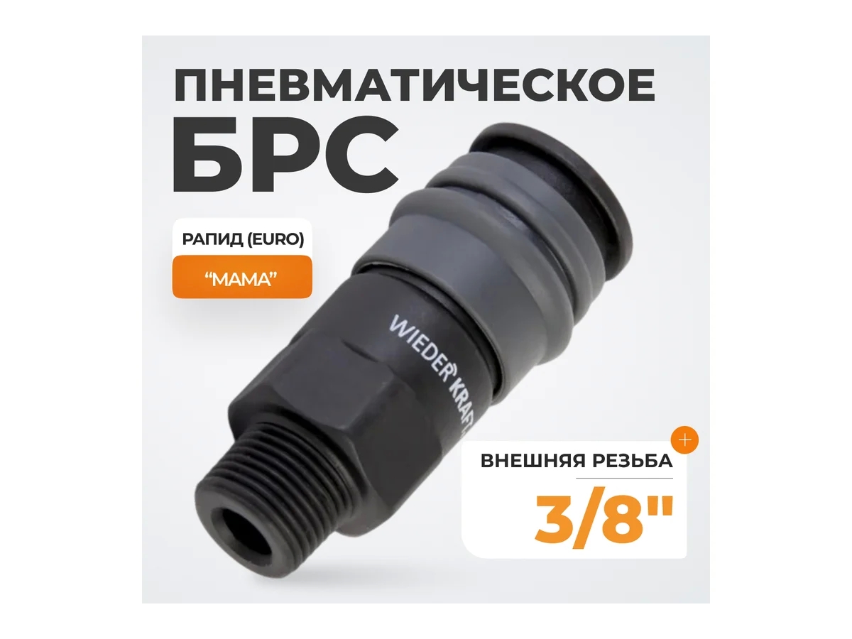 Композитное быстроразъемное соединение WIEDERKRAFT WDK-830SM применяется для соединения различных частей пневмосистем. С одной стороны фитинг имеет наружную резьбу размером 3/8", с другой быстроразъемное соединение рапид тип "мама". Изготовлен из композитного материала. Созданная конструкция обладает высокой надежностью и герметичностью.