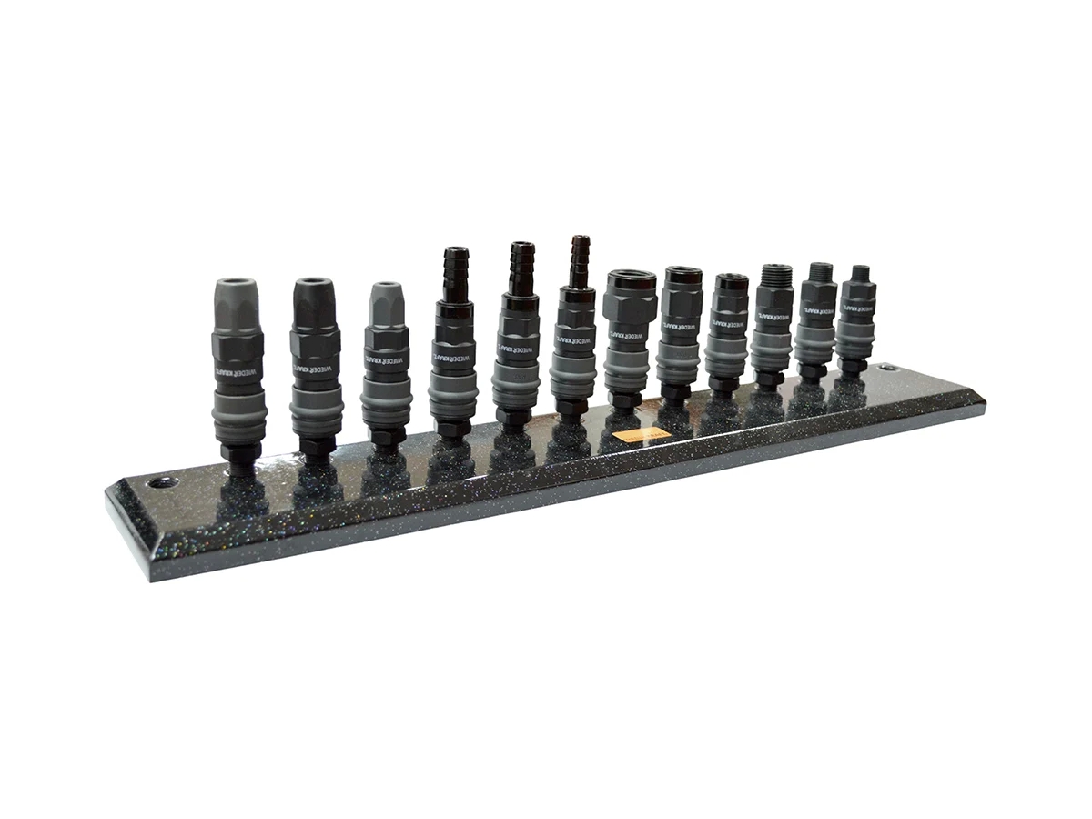Набор WIEDERKRAFT WDK-880S предназначен для использования в торговых залах и витринах в качестве демонстрационных образцов композитных быстроразъемных соединений. Комплект включает 12 БРС различных типов, размещенных на подставке.