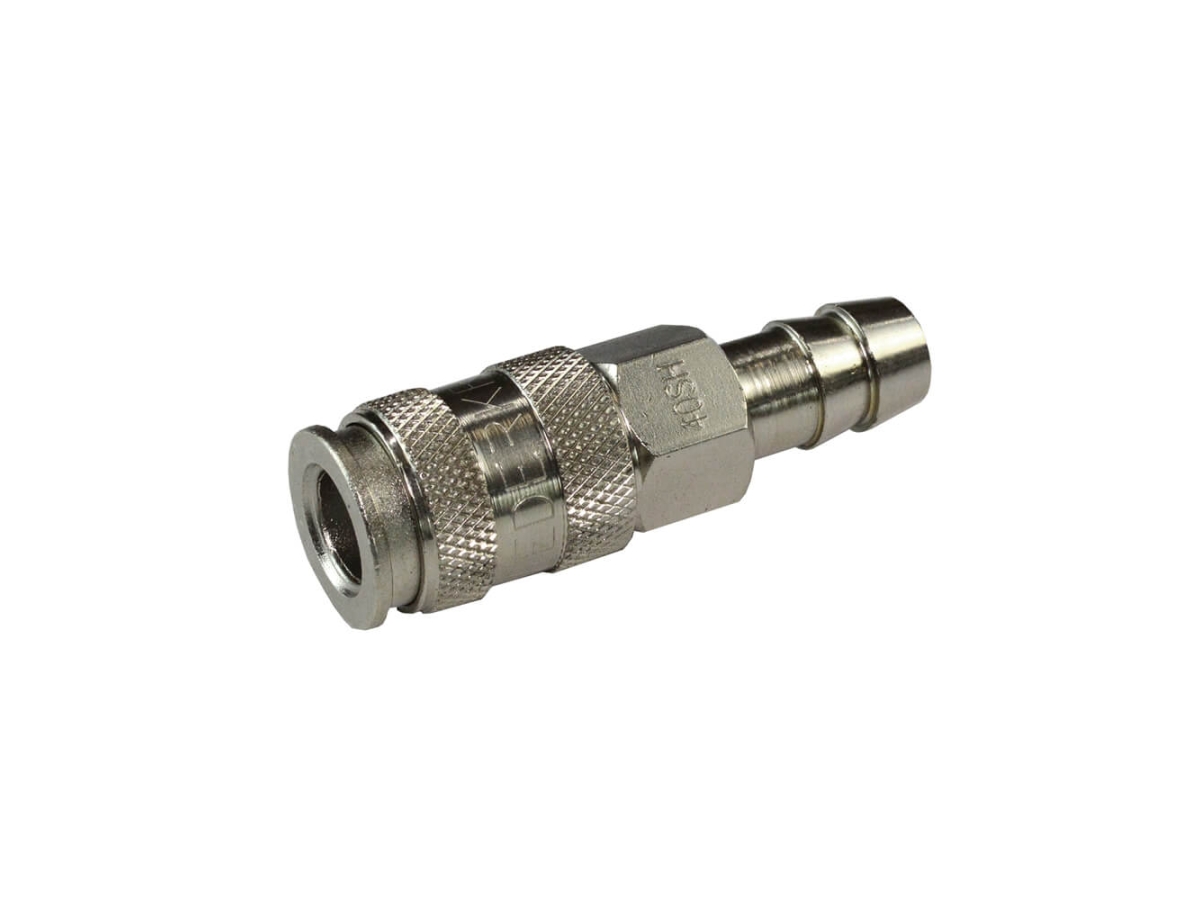 С одной стороны фитинг имеет быстроразъемное соединение (фитинг, быстросъем, рапид) типа «мама» для подключения пневматического инструмента и оборудования, с другой – соединение типа «елочка» (штуцер с зубчатой насечкой) для подключения к пневмошлангу с внутренним диаметром 12 мм.