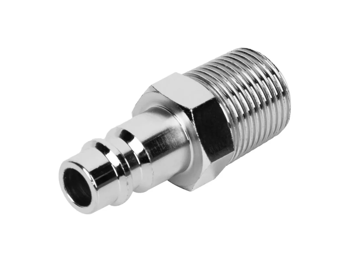 Штекер быстроразъемного EU соединения WIEDERKRAFT WDK-83PM типа «папа» с наружной резьбой 3/8" M применяется для соединения различных частей пневмосистем. С одной стороны фитинг имеет быстросъемное соединение рапид типа «папа», с другой — внешнюю резьбу 3/8" («папа»).