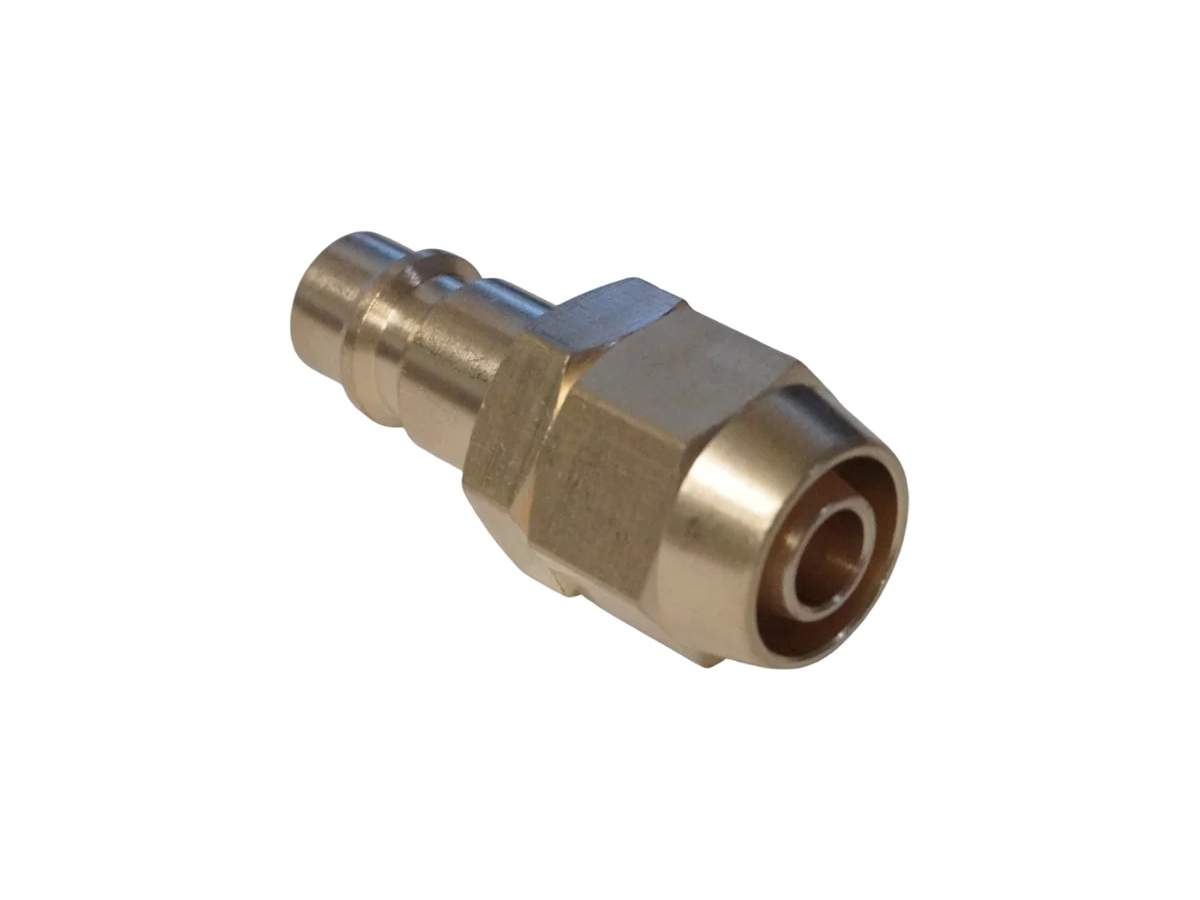Латунный переходник "папа" быстросъемный WIEDERKRAFT WDK-30PPB с обжимным креплением под шланг 8х12 мм предназначен для надежного подключения пневматических шлангов к инструменту или компрессору.