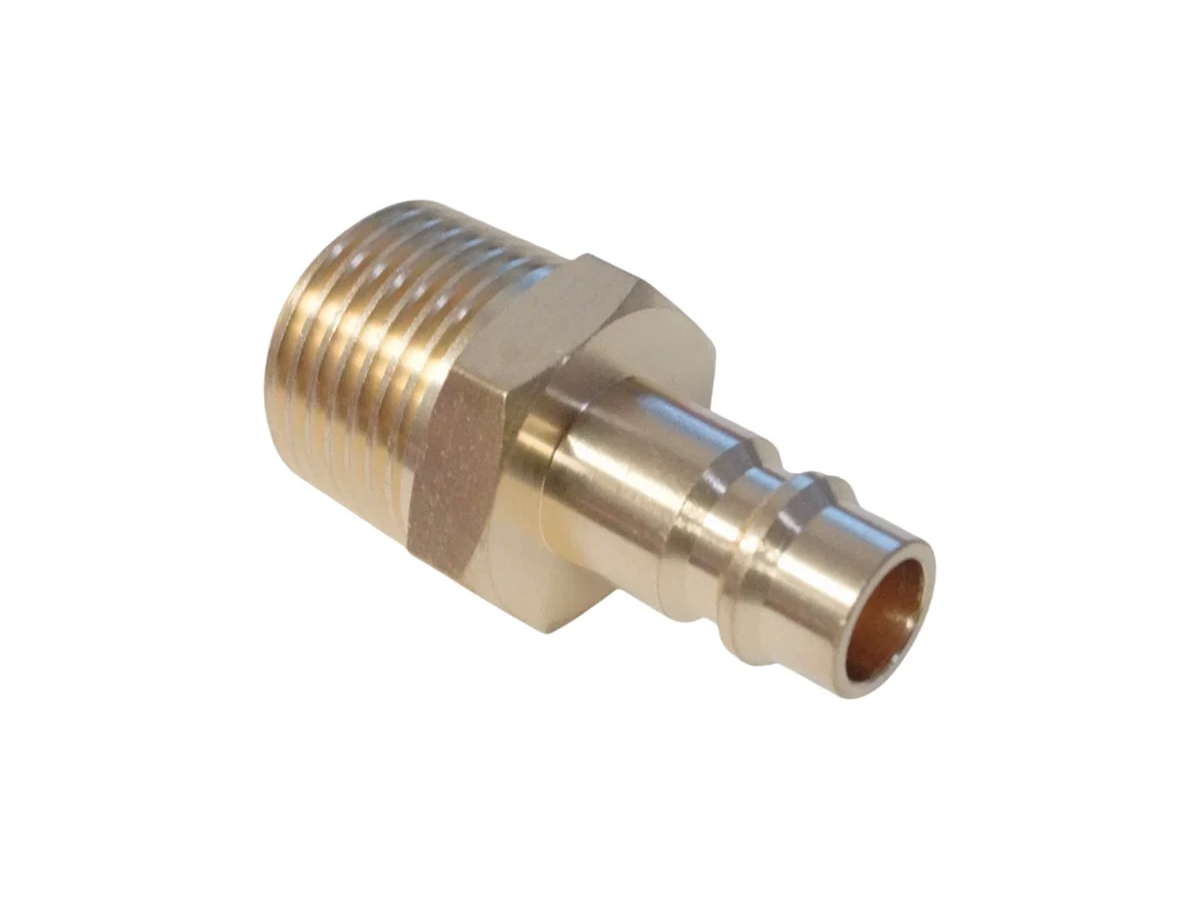 Латунный переходник "папа" быстросъемный WIEDERKRAFT WDK-40PMB с наружной резьбой ½" применяется для подключения пневмоинструмента к шлангам через соединение "мама" рапид (EURO). исключает возможность появления коррозии и обеспечивает долговечность.