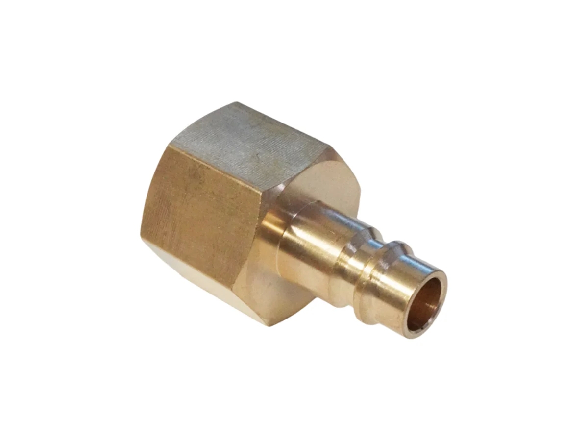 Латунный переходник "папа" быстросъемный с присоединительным размером внутренней резьбы 1/2". Предназначен для установки на входе некоторых пневмоинструментов и их присоединения к шлангам через быстросъемное соединение "мама". Латунный корпус исключает возможность появления коррозии.