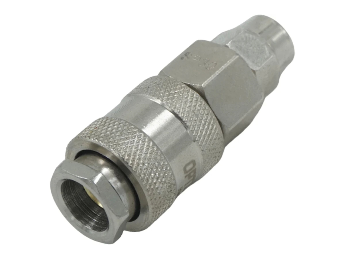 Быстросъемное пневматическое соединение с обжимным креплением под шланг 5х8 мм предназначено для подключения шлангов в пневмосистемах. Оснащено разъемом типа «мама» (рапид EURO) и обжимной гайкой для надежного крепления шланга с внутренним диаметром 5 мм и внешним диаметром 8 мм. Применяется совместно с быстросъемным соединением "папа".