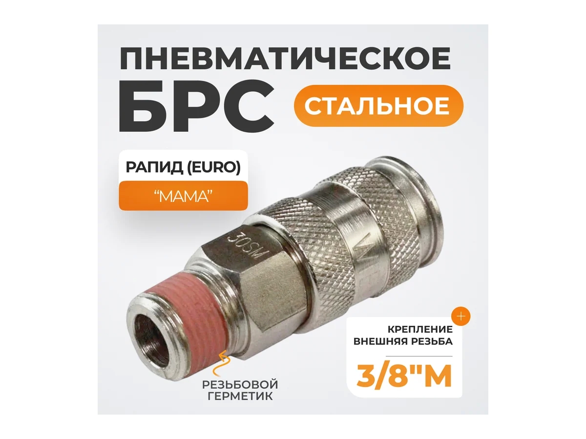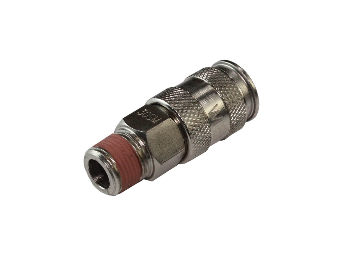 Пневматическое быстросъемное соединение WIEDERKRAFT WDK-830SMA типа «мама» с наружной резьбой 3/8" предназначено для подключения пневмоинструмента, оборудования и элементов пневмосистем. С одной стороны фитинг имеет быстроразъемное соединение типа «мама», с другой — наружную резьбу М 3/8.