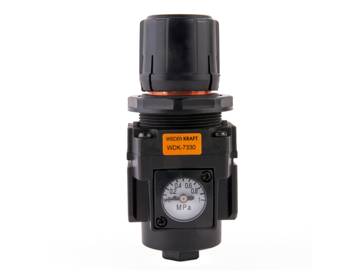 Регулятор давления WIEDERKRAFT WDK-7330 предназначен для контроля и фиксации давления в пневмосистеме. Уровень давления регулируется с помощью вентиля и отображается на встроенном манометре.