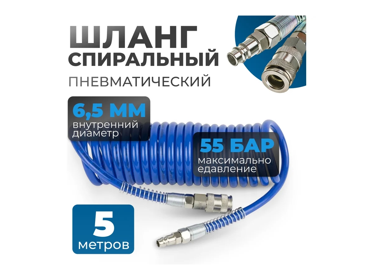 Пневматический спиральный шланг OPTIMUS HD OPT-7655 длиной 5 м предназначен для подключения пневмоинструмента к компрессору. Компактная спиральная форма облегчает работу и предотвращает запутывание.
