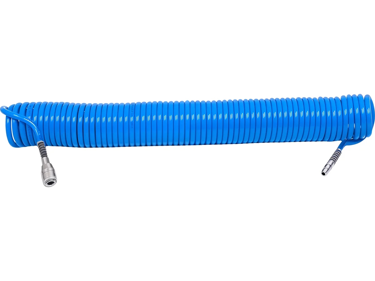 Кабель размером выполнен из стойкого полиуретана. Шланг устойчив к низким и высоким температурам, поэтому его можно использовать и за пределами мастерской. Тонкая конструкция змеевика экономит место, а установленные на заводе быстроразъемные соединения делают его незаменимым инструментом в любой мастерской или производственном предприятии.