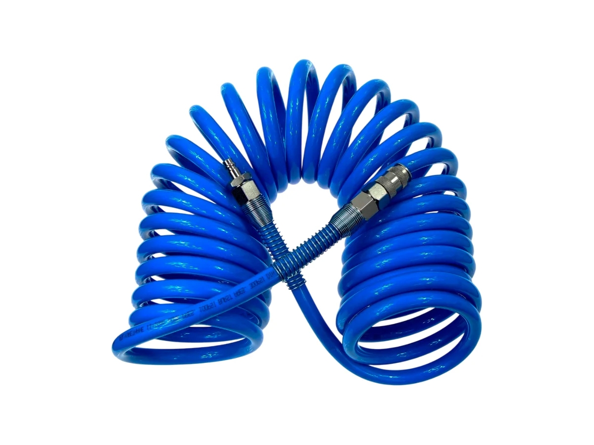 Гибкие,спиральные полиуретановые шланги с быстросъемными соединениями.
