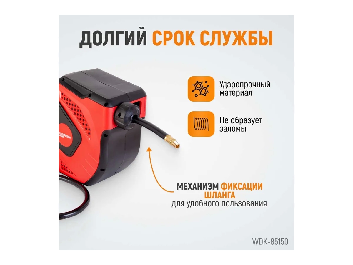 Шланг пневматический армированный WIEDERKRAFT WDK-85150 предназначен для подключения пневматического инструмента к магистрали сжатого воздуха. Устойчив к деформации, разрывам и перекручиванию в процессе работы. Шланг оснащен фитингами с резьбой 1/4''. Размещен на автоматической катушке закрытого типа. Шланг легко вытягивается и автоматически сворачивается, что обеспечивает удобство работы.