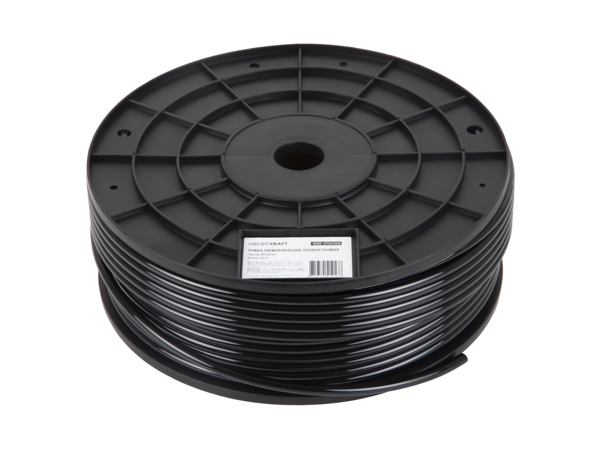 Трубка пневматическая прямая 5x8 мм катушка 100 м WIEDERKRAFT WDK-SPU0508 из полиуретана применяется для подключения пневмоавтоматики и работы в системах стандартного давления. Оптимально подходит для подвижных пневмосистем, где особенно важна эластичность и сохранение гибкости даже при пониженных температурах.