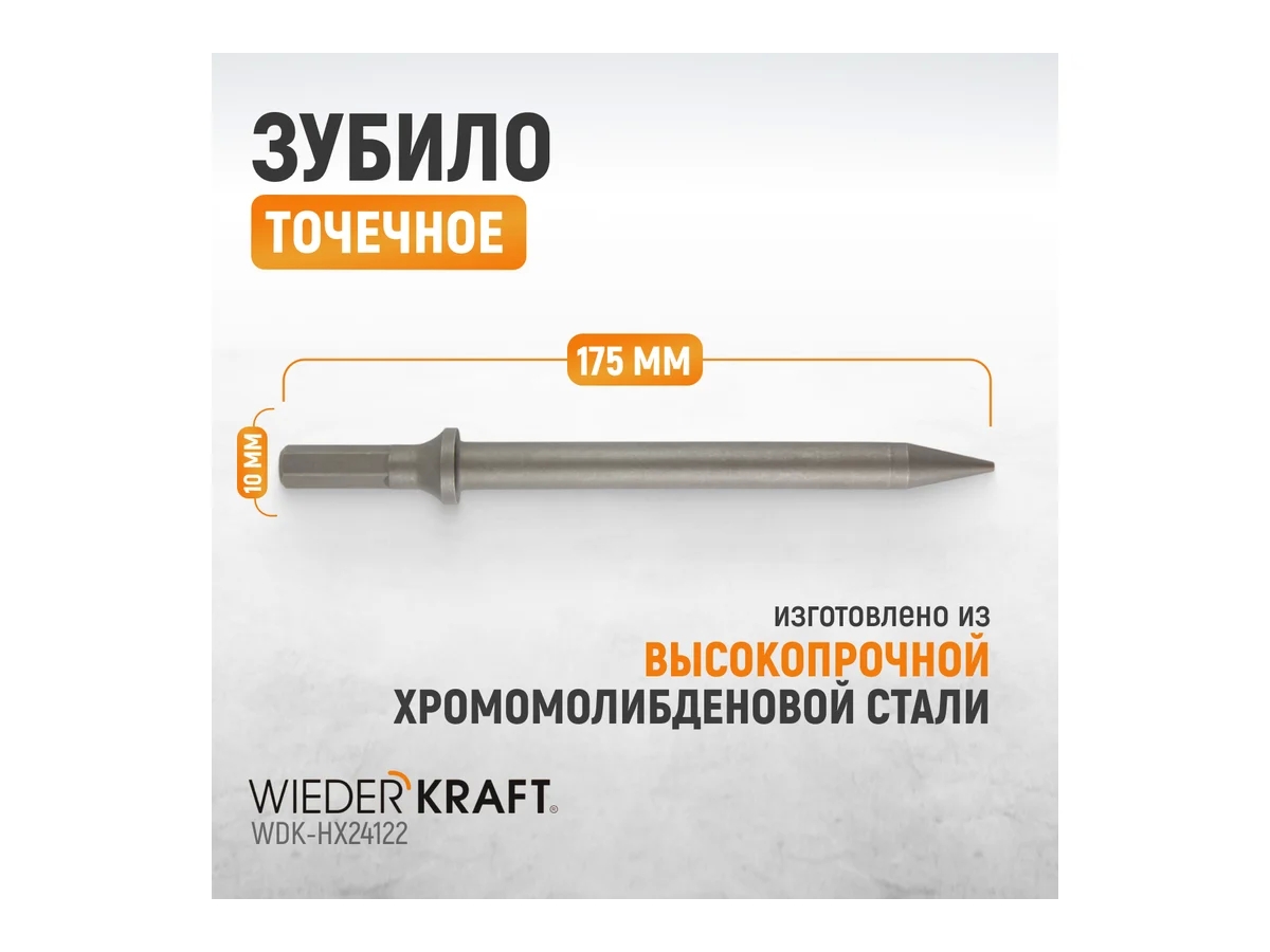Зубило точечное WDK-HX24122 разработано для выполнения демонтажных и пробивных работ по бетону, кирпичной кладке, камню и другим твердым материалам. Точечная форма рабочей части обеспечивает высокую эффективность при создании отверстий, углублений и локальном разрушении материала.