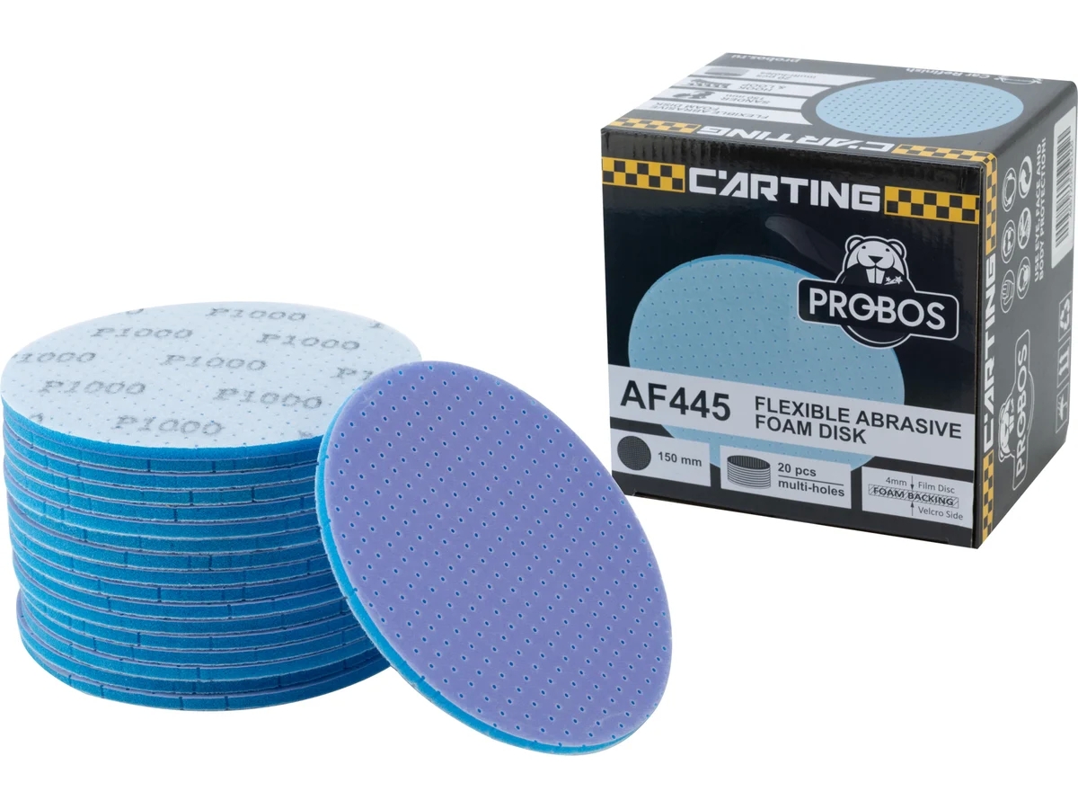 PROBOS Carting AF445— сериягибких абразивных круговна мягкой вспененной основе. Предназначены для обработки поверхностей, в частности лакокрасочных покрытий (ЛКП).