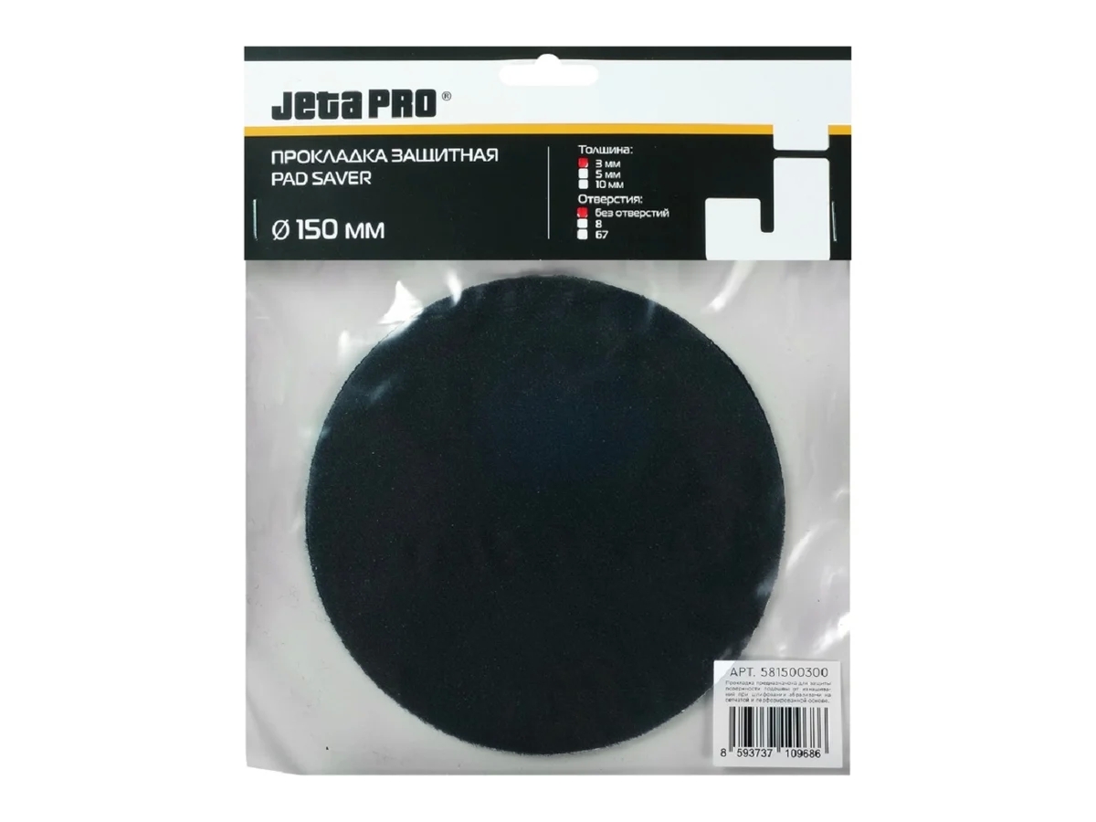 Прокладка защитная на машинку 150 мм JETA PRO, не имеет отверстий. Предназначена для шлифовальной машинки с диаметром подошвы 150 мм..Защитные прокладки разработаны для защиты подошв шлифовального инструмента от износа и истирания при длительном шлифовании.