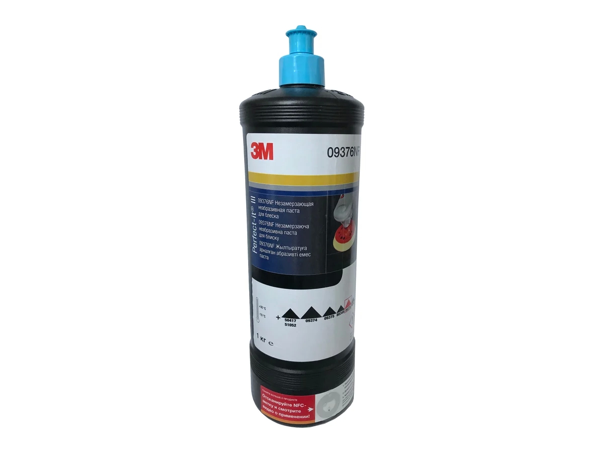 Паста незамерзающая неабразивная 09376NF 1 кг 3М 7100110852 предназначена для устранения рисок, которые остаются после абразивной полировки. Рекомендуется использовать с полировальной машиной при 1500-2500 об/мин и черным полировальником 09378 Perfect-in.