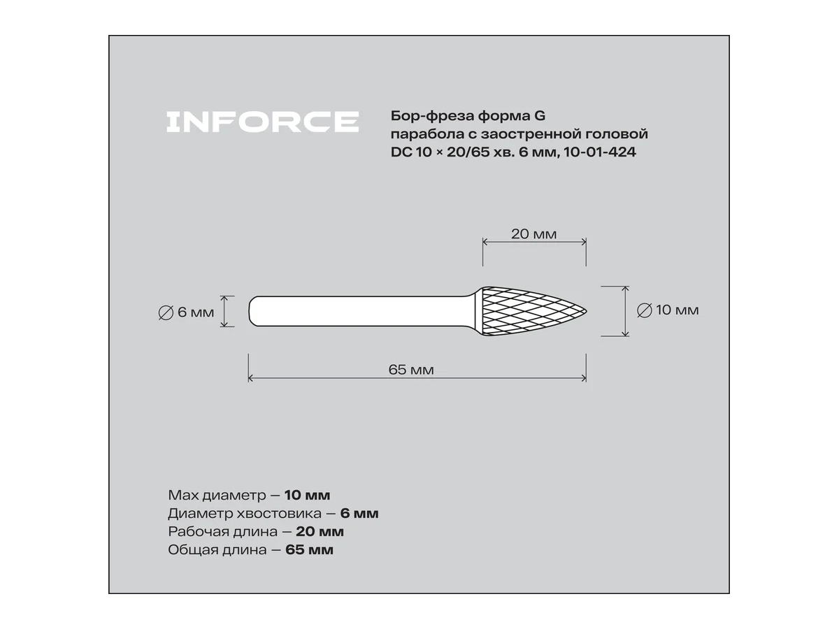 - Диаметр хвостовика6 мм