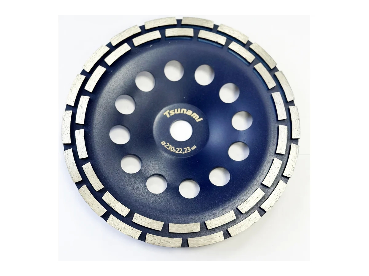 Чашка алмазная двухрядная предназначена для ручных шлифовальных машин. Применяется для обработки поверхностей из бетона, кирпичной кладки, природного и искусственного камня. Двойная сегментированная поверхность чашки не требует водяного охлаждения во время работы. Зачастую специалисты применяют этот вид насадки для устранения неравномерного толстого слоя стяжки. Позволяет осуществить грубое шлифование конструкций.
