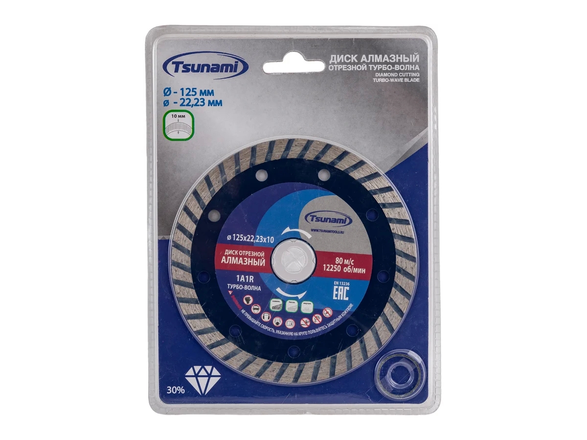 Tsunami Turbo, РЕСУРС УВЕЛИЧЕН, БЛАГОДАРЯ ОПТИМАЛЬНО ПОДОБРАННЫМ КОМПОНЕНТАМ МЕТАЛЛИЧЕСКОЙ СВЯЗКИ И ВЫСОКОЙ КОНЦЕНТРАЦИИ СИНТЕТИЧЕСКИХ АЛМАЗОВ ( 30%).