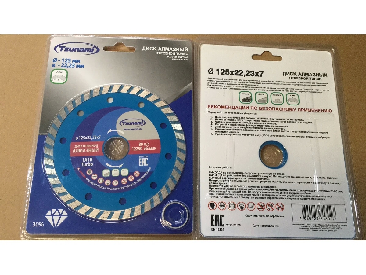 Tsunami Turbo, РЕСУРС УВЕЛИЧЕН, БЛАГОДАРЯ ОПТИМАЛЬНО ПОДОБРАННЫМ КОМПОНЕНТАМ МЕТАЛЛИЧЕСКОЙ СВЯЗКИ И ВЫСОКОЙ КОНЦЕНТРАЦИИ СИНТЕТИЧЕСКИХ АЛМАЗОВ ( 30%).