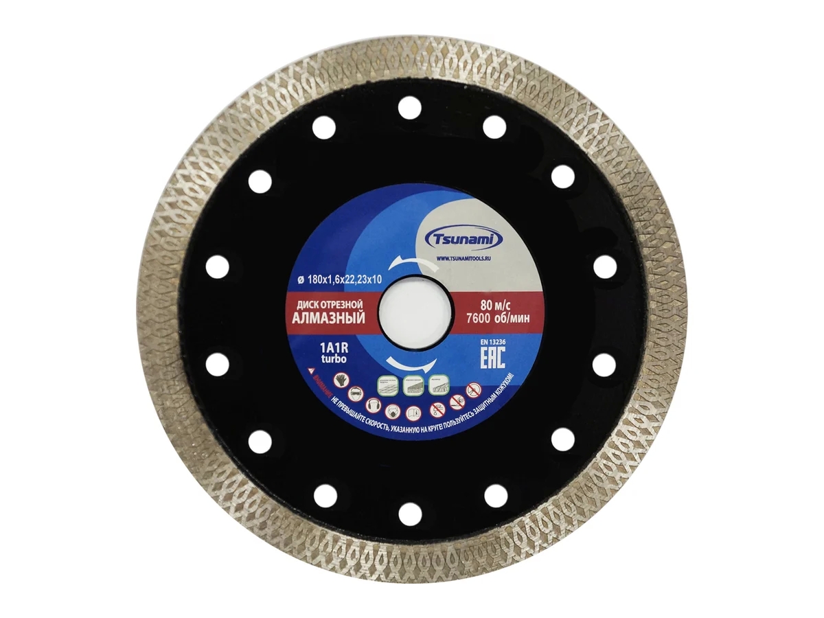 Универсальный диск Tsunami Тонкий горячего прессования, РЕСУРС УВЕЛИЧЕН, БЛАГОДАРЯ ОПТИМАЛЬНО ПОДОБРАННЫМ КОМПОНЕНТАМ МЕТАЛЛИЧЕСКОЙ СВЯЗКИ И ВЫСОКОЙ КОНЦЕНТРАЦИИ СИНТЕТИЧЕСКИХ АЛМАЗОВ ( 30%).