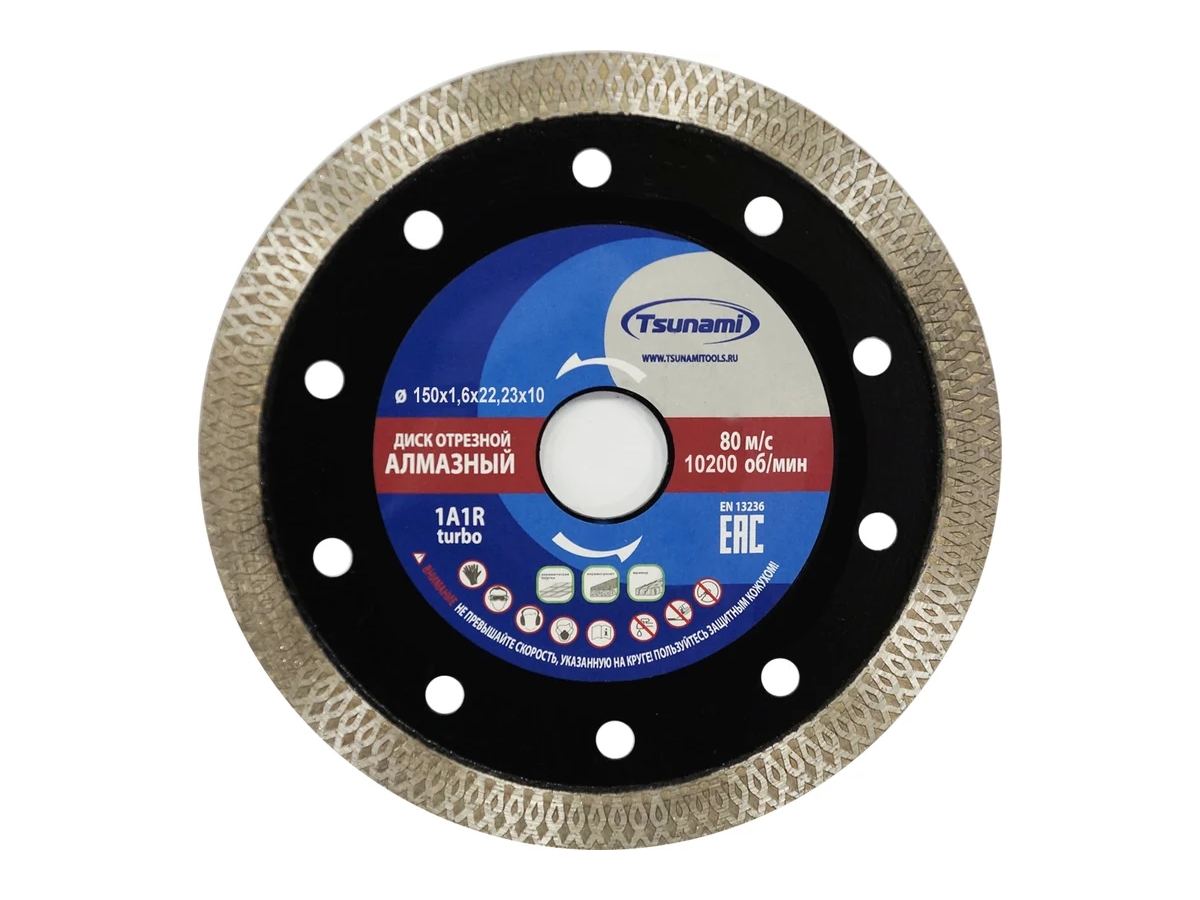 Универсальный диск Tsunami Тонкий горячего прессования, РЕСУРС УВЕЛИЧЕН, БЛАГОДАРЯ ОПТИМАЛЬНО ПОДОБРАННЫМ КОМПОНЕНТАМ МЕТАЛЛИЧЕСКОЙ СВЯЗКИ И ВЫСОКОЙ КОНЦЕНТРАЦИИ СИНТЕТИЧЕСКИХ АЛМАЗОВ ( 30%).