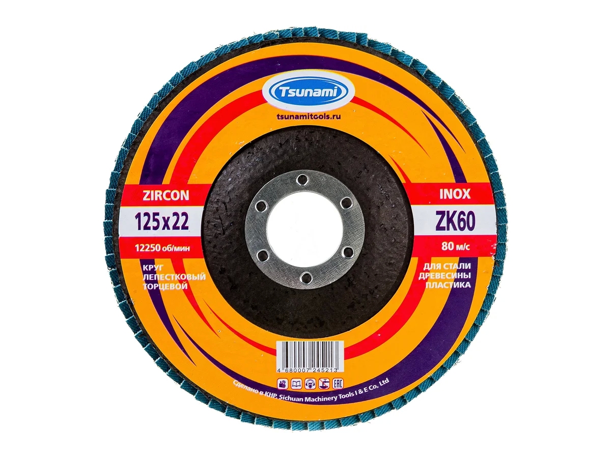 Круг лепестковый циркониевый Tsunami КЛТ1 D9610000ZK12560 может применяться для обработки изделий из металла и нержавеющей стали. Имеет выпуклую форму и качественно шлифует поверхность.