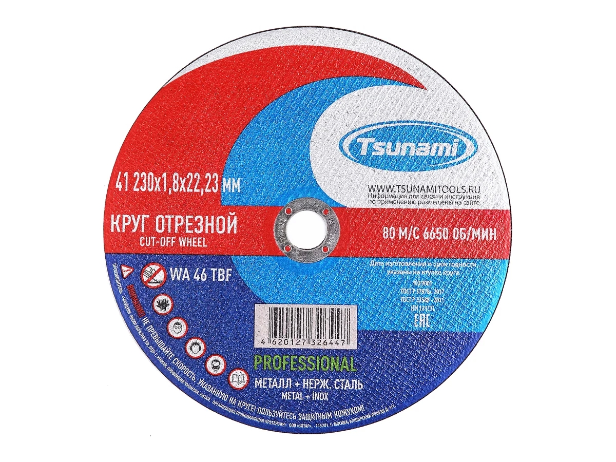 Абразивные круги «Tsunami» PROFESSIONAL – производятся на современном оборудовании, с использованием передовых инновационных технологий и оригинальной рецептуры. Соответствует Европейским стандартам качества EN 12413 и требованиям технического регламента Таможенного союза EAЭС (подтверждено Декларацией соответствия Таможенного союза).