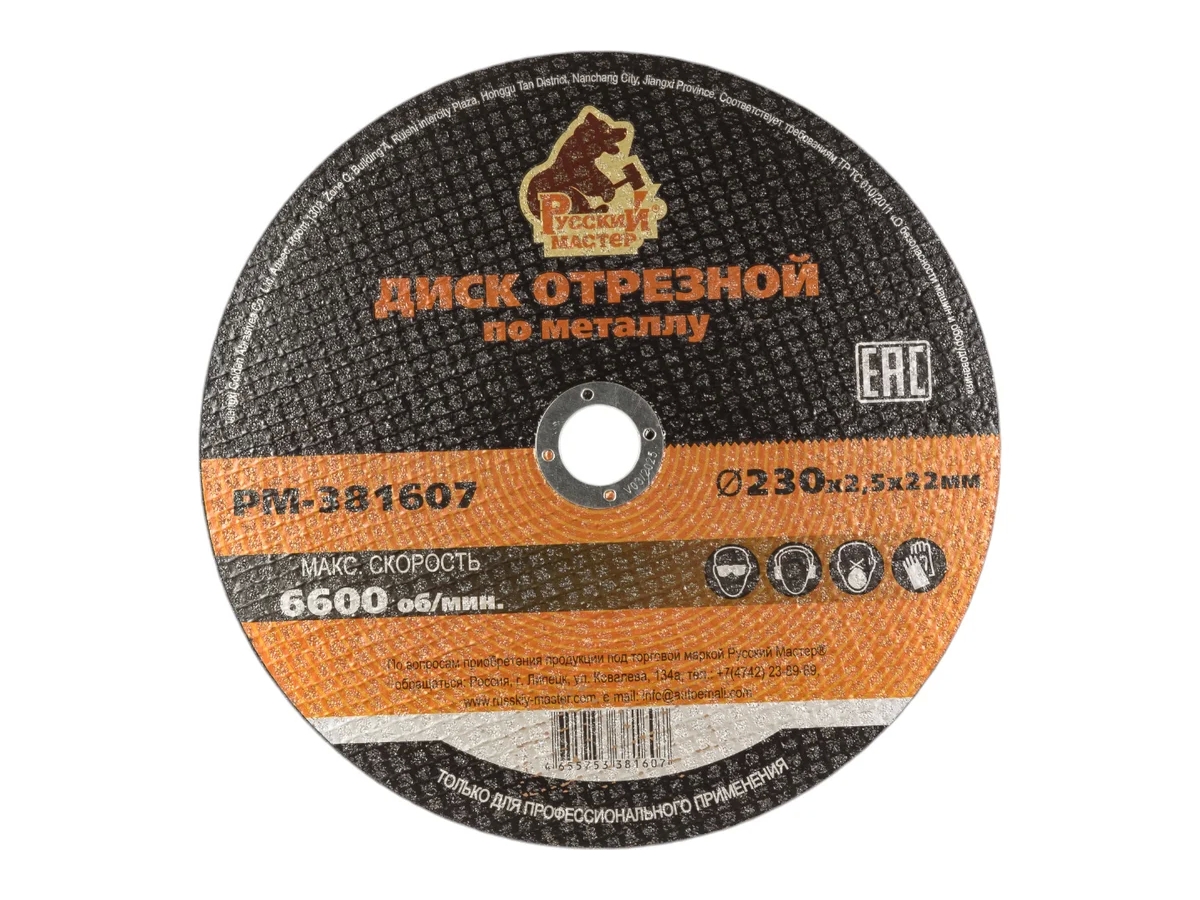 Диск отрезной по металлу 230x2.5x22 мм Русский Мастер РМ-381607 используется совместно с угловой шлифовальной машиной (УШМ). Применяется для шлифования металлических изделий, удаления ржавчины, зачистки поверхности перед сваркой. Диск обладает высокой производительностью, прочностью, износостойкостью и большим ресурсом работы.