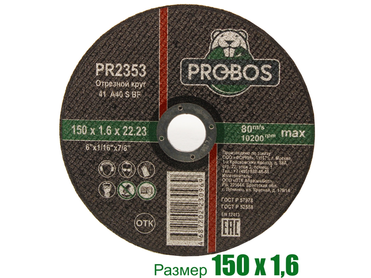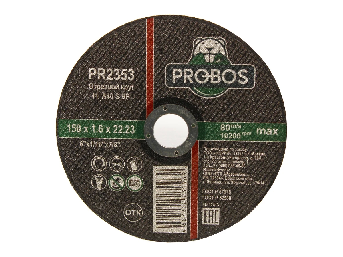 Круг отрезной абразивный 150x1.6x22.23 мм PROBOS PR2353 произведен из высококачественного европейского сырья, характеризующийся высокой производительностью, а также первоклассными показателями износостойкости, точности и скорости реза. Максимальная безопасность при проведении работ.