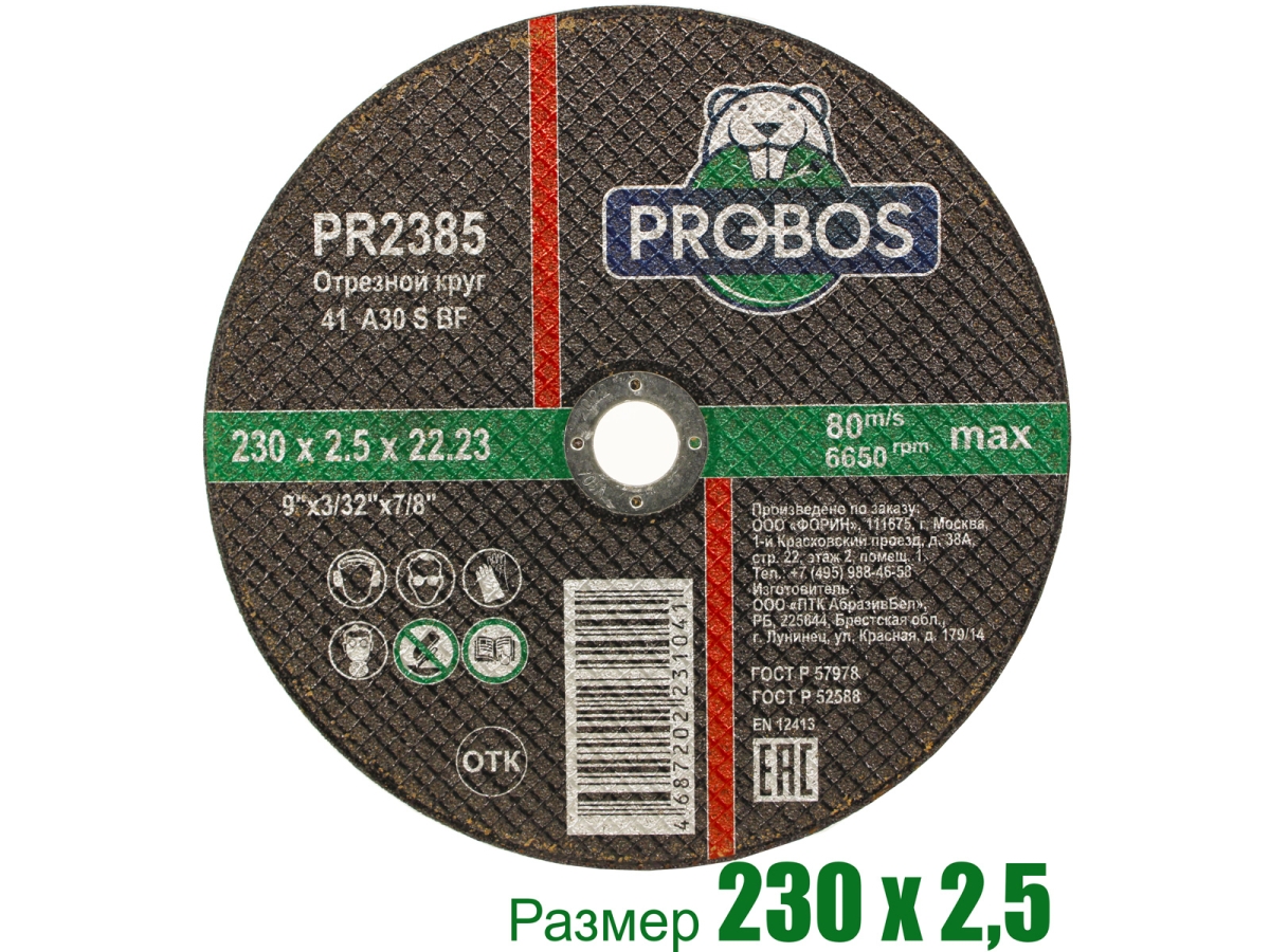 Круг отрезной абразивный 230x2.5x22.23 мм PROBOS PR2385 произведен из высококачественного европейского сырья, характеризующийся высокой производительностью, а также первоклассными показателями износостойкости, точности и скорости реза. Максимальная безопасность при проведении работ.