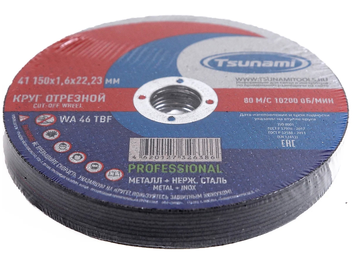 Отрезные круги «Tsunami»PROFESSIONAL применяются для высокопроизводительной резки металлических конструкций и деталей различных марок сталей и в том числе из нержавеющей.