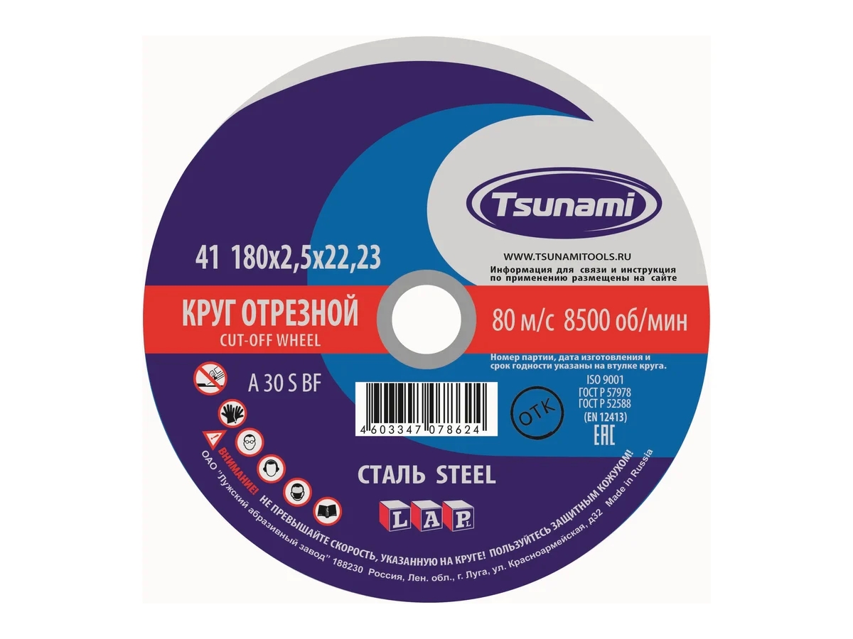 Предлагаем Вашему вниманию высококачественные отрезные круги Tsunami. Круги производят на современном заводе в России из качественного сырья. Всё сырьё проходит строгий входной контроль на соответствие требований стандарта. Жесткий контроль качества на каждом этапе производства, применение современных материалов и строгое соблюдение всех требований и норм производства, обеспечивают кругам Tsunami высокую производительность и безопасность.