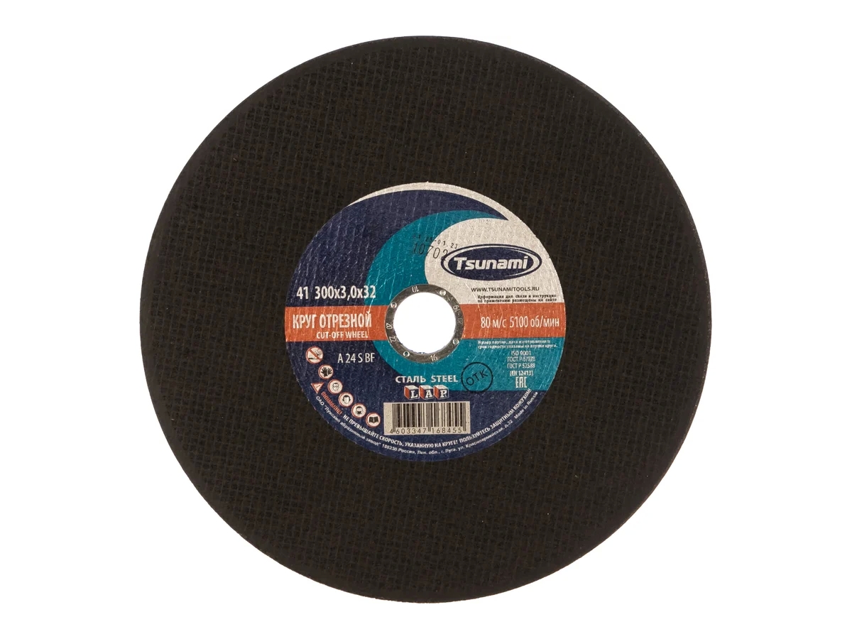 Предлагаем Вашему вниманию высококачественные отрезные круги Tsunami. Круги производят на современном заводе в России из качественного сырья. Всё сырьё проходит строгий входной контроль на соответствие требований стандарта. Жесткий контроль качества на каждом этапе производства, применение современных материалов и строгое соблюдение всех требований и норм производства, обеспечивают кругам Tsunami высокую производительность и безопасность.