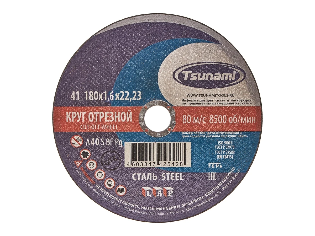 Предлагаем Вашему вниманию высококачественные отрезные круги Tsunami. Круги производят на современном заводе в России из качественного сырья. Всё сырьё проходит строгий входной контроль на соответствие требований стандарта. Жесткий контроль качества на каждом этапе производства, применение современных материалов и строгое соблюдение всех требований и норм производства, обеспечивают кругам Tsunami высокую производительность и безопасность.