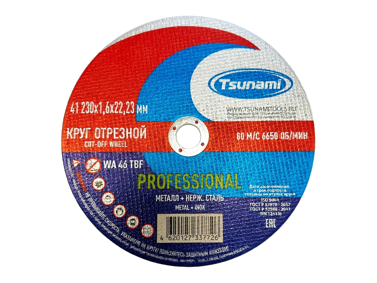 Абразивные круги «Tsunami» PROFESSIONAL – производятся на современном оборудовании, с использованием передовых инновационных технологий и оригинальной рецептуры. Соответствует Европейским стандартам качества EN 12413 и требованиям технического регламента Таможенного союза EAЭС (подтверждено Декларацией соответствия Таможенного союза).