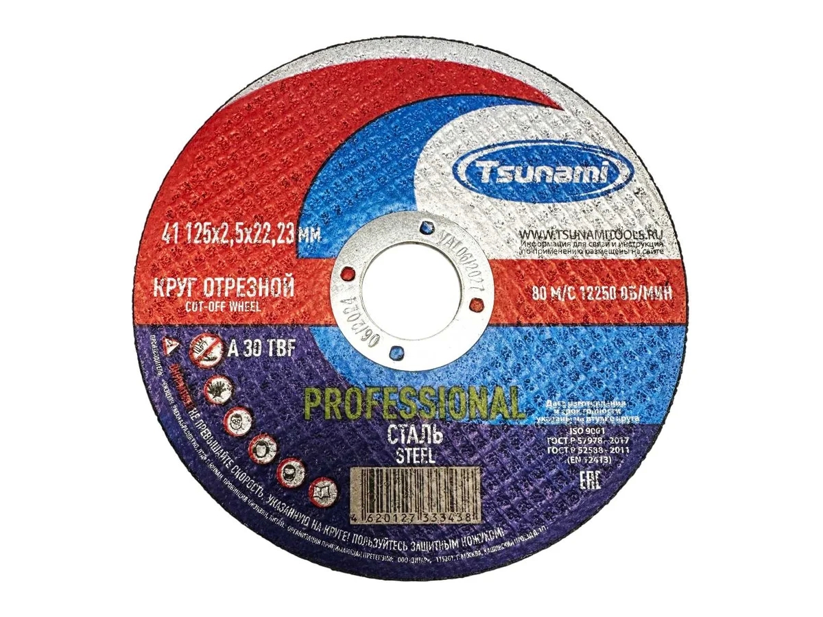 Абразивные круги «Tsunami» PROFESSIONAL – производятся на современном оборудовании, с использованием передовых инновационных технологий и оригинальной рецептуры. Соответствует Европейским стандартам качества EN 12413 и требованиям технического регламента Таможенного союза EAЭС (подтверждено Декларацией соответствия Таможенного союза).
