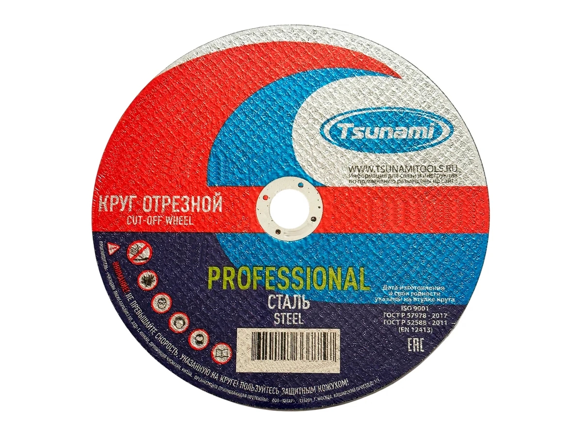 Отрезные круги «Tsunami»PROFESSIONALприменяются для высокопроизводительной резки металлических конструкций и деталей различных марок сталей и в том числе из нержавеющей.