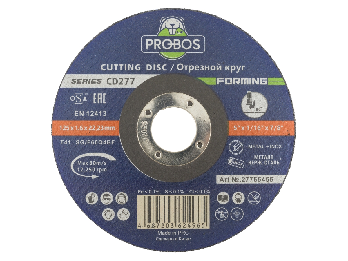 Отрезной круг PROBOS FORMING metal&lnox - предназначен для выполнения работы любой сложности: отрезки листа любой толщины, отрезки трубы и прутка, удаления литников, удаления заусенец и грата.