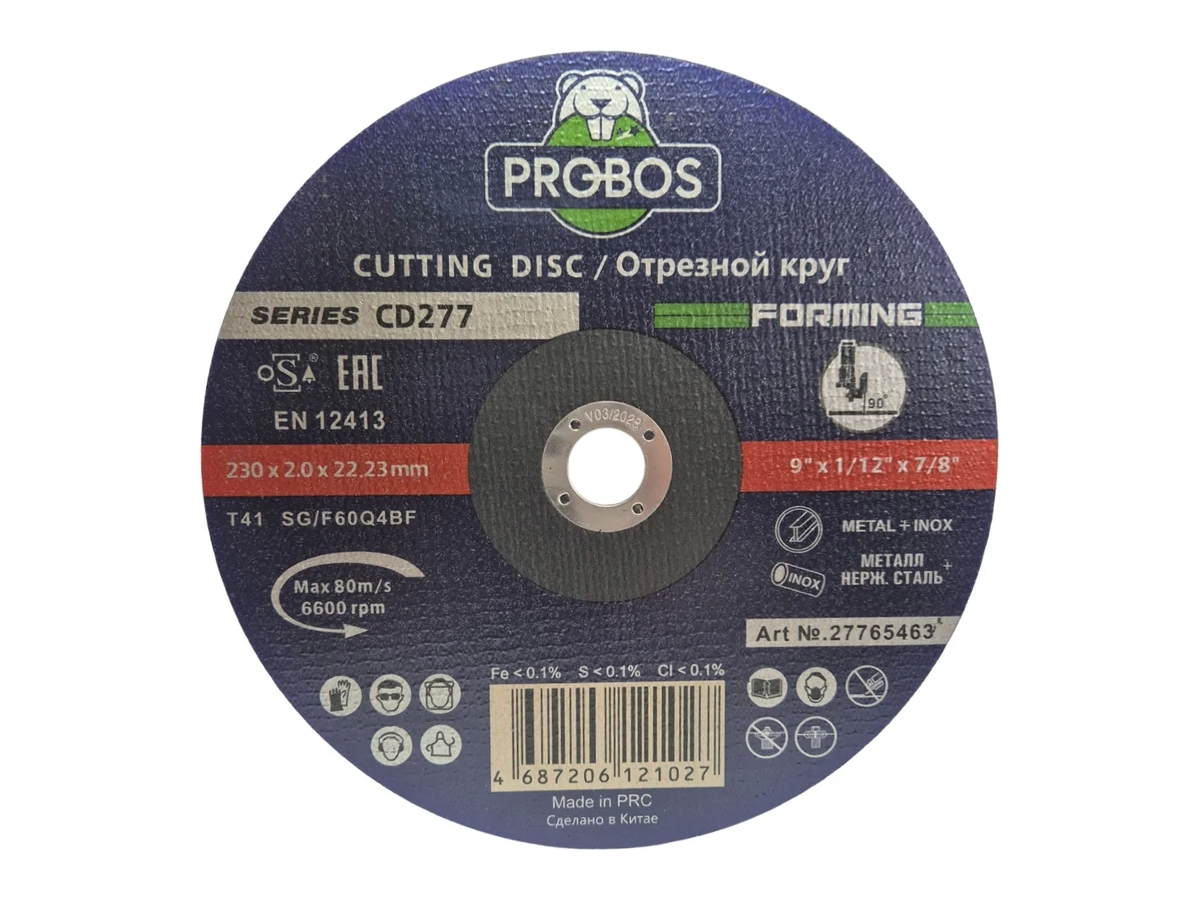 Отрезные круги PROBOS FORMING metal&lnox - предназначены для выполнения работы любой сложности: отрезки листа любой толщины, отрезки трубы и прутка, удаления литников, удаления заусенец и грата. Круги обеспечивают высокую скорость отрезки при меньшем нажиме, а также отличное качество линии реза без заусенец и других дефектов. Большой ресурс позволяет снизить общие затраты на отрезку и последующую абразивную обработку. Отрезные круги PROBOS FORMING работают с меньшим нагревом и могут использоваться для обработки металлов и сплавов, чувствительных к высокой температуре.
