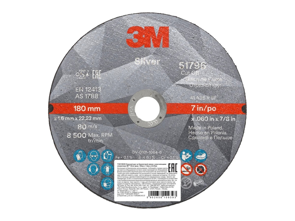 Круг отрезной Silver Т41 3M 7100139239 предназначен для угловых шлифовальных машин. Применяется для реза всех типов цветных металлов, нержавеющей и углеродистой сталей. Технология зерна точной формы 3M™ позволяет кругу резать детали быстро и плавно, не нагревая поверхность. Оснастка служит дольше, чем круги с обычным оксидом алюминия и цирконатом алюминия, что означает уменьшение замен круга, улучшение производительности и контроль затрат.
