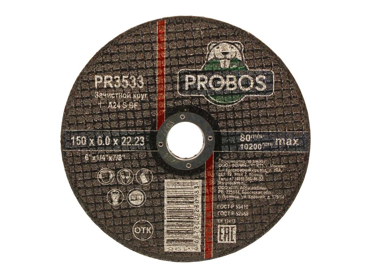 Круг зачистной абразивный 150x6.0x22.23 мм PROBOS PR3533 - профессиональный абразивный инструмент, произведенный из высококачественного европейского сырья, характеризующийся высокой производительностью, а также первоклассными показателями износостойкости, точности и скорости реза. Максимальная безопасность при проведении работ. Используется на ручных угловых шлифовальных машинах.