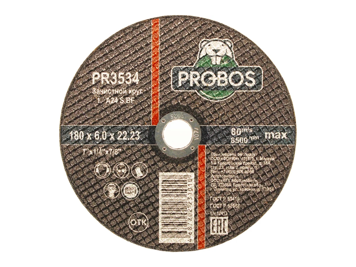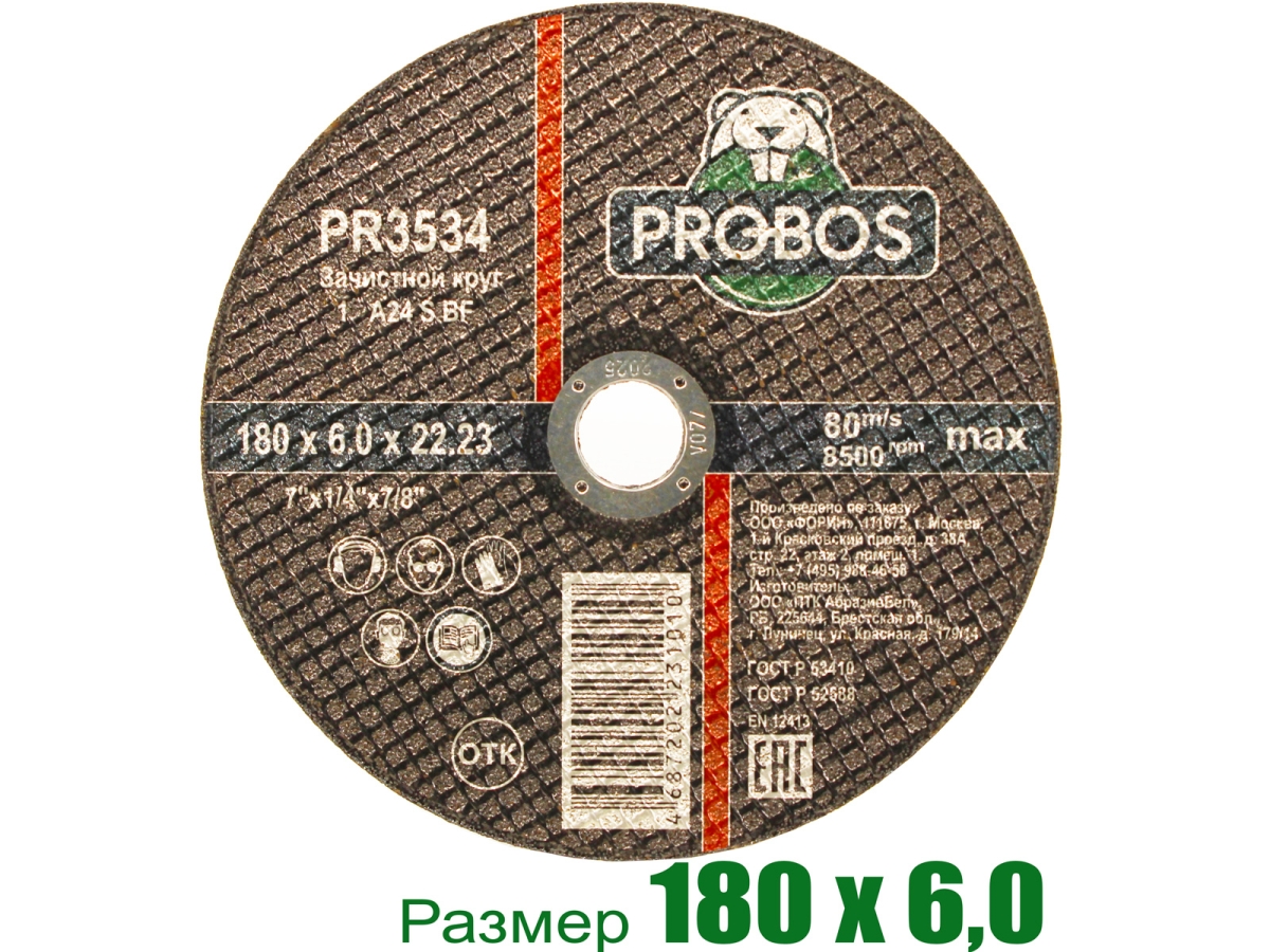Круг зачистной абразивный 180x6.0x22.23 мм PROBOS PR3534 - профессиональный абразивный инструмент, произведенный из высококачественного европейского сырья, характеризующийся высокой производительностью, а также первоклассными показателями износостойкости, точности и скорости реза. Максимальная безопасность при проведении работ. Используется на ручных угловых шлифовальных машинах.