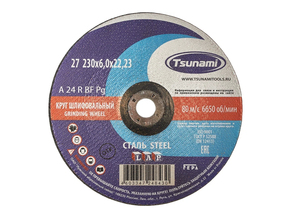 Предлагаем Вашему вниманию высококачественные отрезные круги Tsunami. Круги производят на современном заводе в России из качественного сырья. Всё сырьё проходит строгий входной контроль на соответствие требований стандарта. Жесткий контроль качества на каждом этапе производства, применение современных материалов и строгое соблюдение всех требований и норм производства, обеспечивают кругам Tsunami высокую производительность и безопасность.