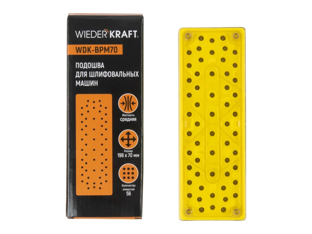 Шлифовальная подошва WDK-BPM70 (аналог 8295380111) предназначена для пневматической шлифовальной машины MIRKA OS383 и обеспечивает надежное удержание шлифовальных листов на липучке во время работы. Подошва оснащена 56 отверстиями для эффективного пылеудаления, что способствует чистоте рабочей зоны и продлевает срок службы абразивов.
