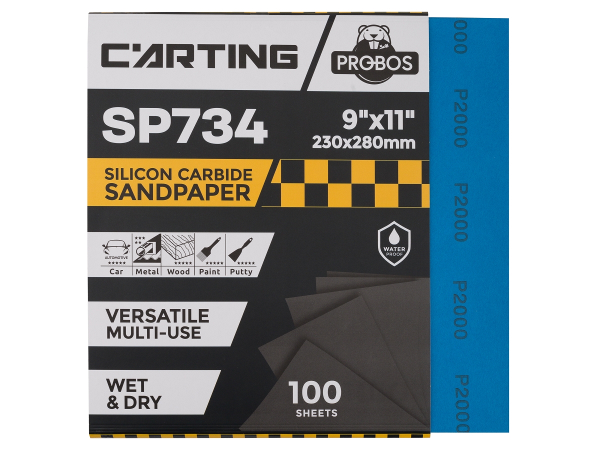 Бумага абразивная PROBOS Carting SP734 - водостойкая абразивная бумага на основе латексной бумаги, изготавливается с применением минералов карбида кремния с чрезвычайно высокой режущей способностью. Предназначена для сухой и влажной шлифовки с водой вручную или с плоскошлифовальной машиной.
