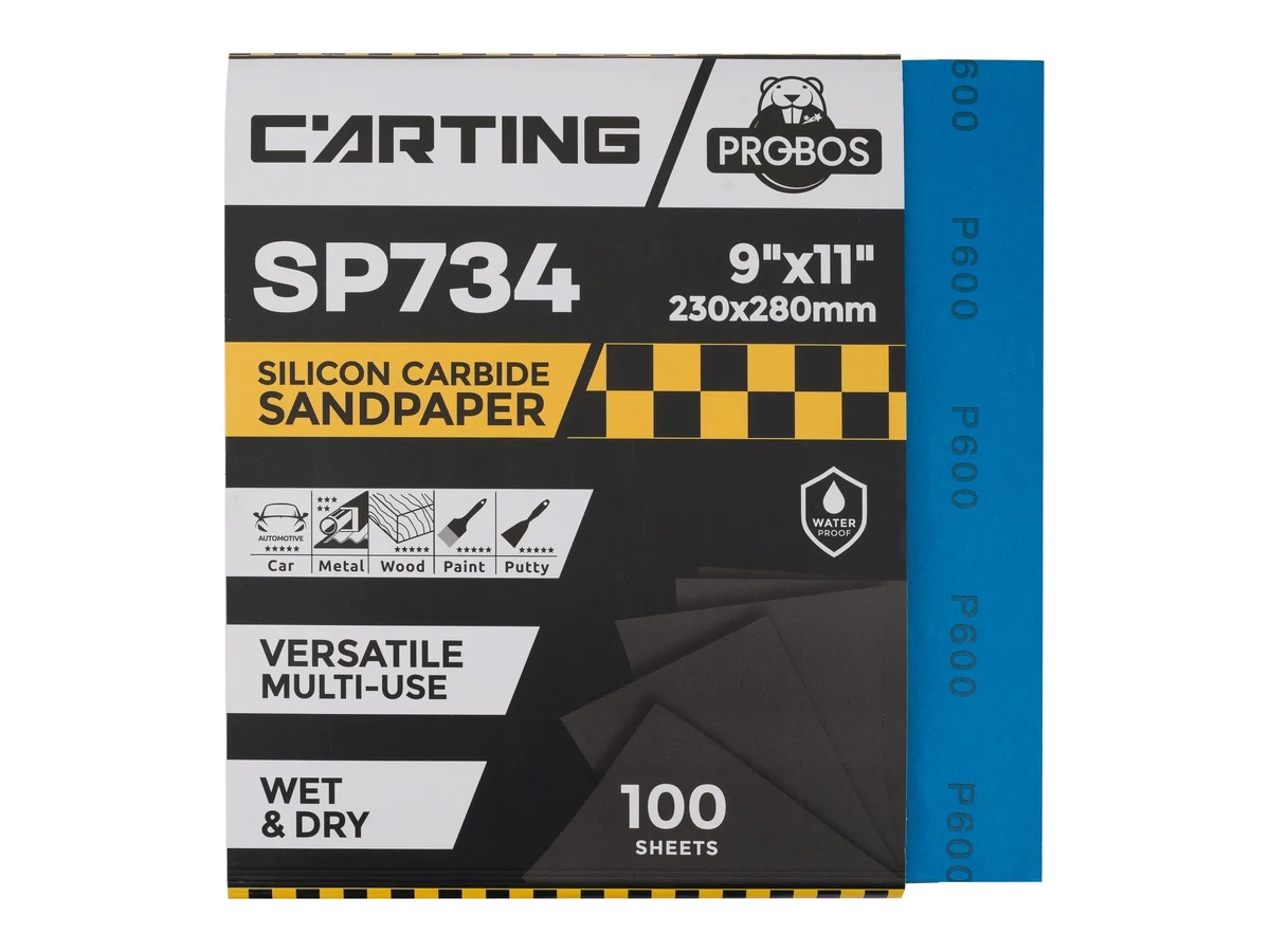 Бумага абразивная PROBOS Carting SP734 - водостойкая абразивная бумага на основе латексной бумаги, изготавливается с применением минералов карбида кремния с чрезвычайно высокой режущей способностью. Предназначена для сухой и влажной шлифовки с водой вручную или с плоскошлифовальной машиной.