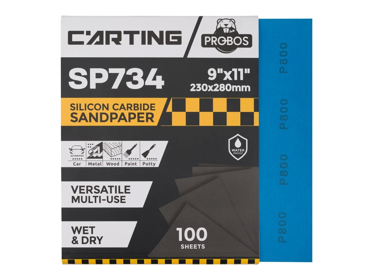 Бумага абразивная PROBOS Carting SP734 - водостойкая абразивная бумага на основе латексной бумаги, изготавливается с применением минералов карбида кремния с чрезвычайно высокой режущей способностью. Предназначена для сухой и влажной шлифовки с водой вручную или с плоскошлифовальной машиной.