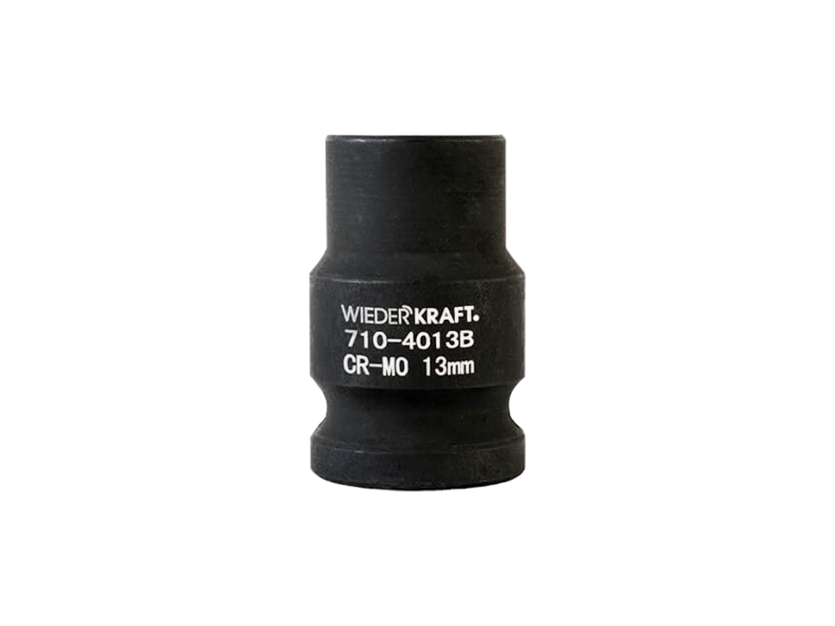 Ударная головка WiederKraft WDK-710-4013 (13 мм) с посадочным квадратом 1/2″ и 6-гранным рабочим профилем. Выполнена из высококачественной хром-молибденовой стали 42 CrMo. Включения хрома и молибдена делают изделие прочным, устойчивым к нагрузкам и деформациям.